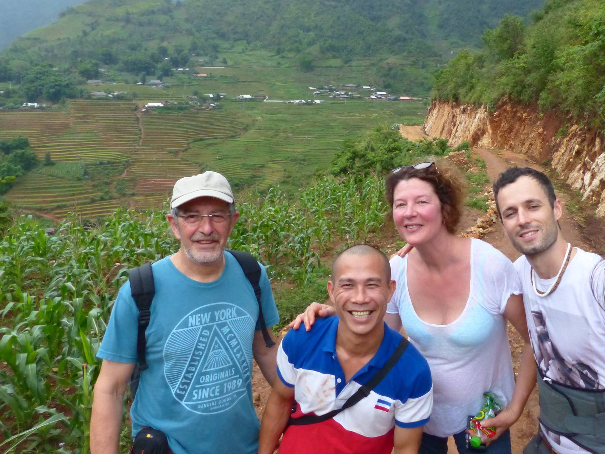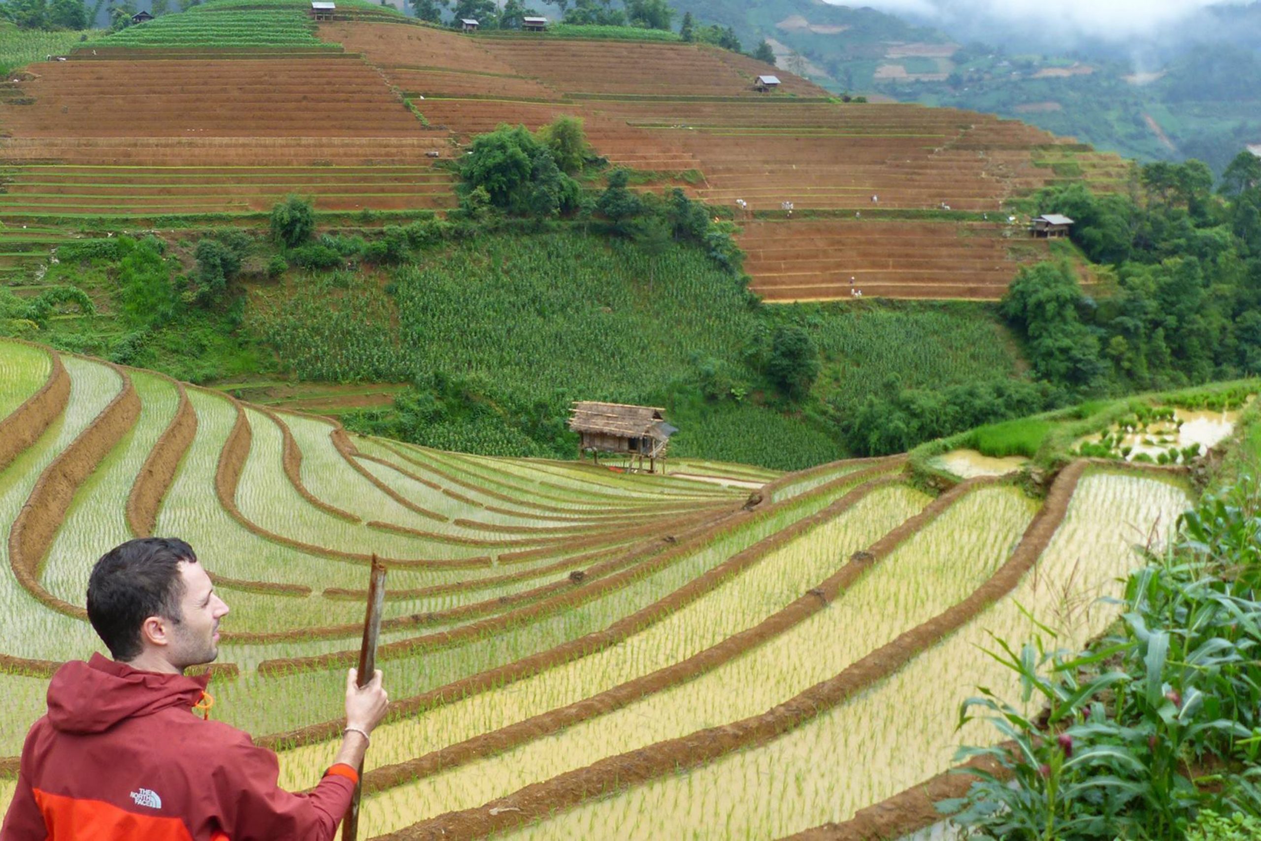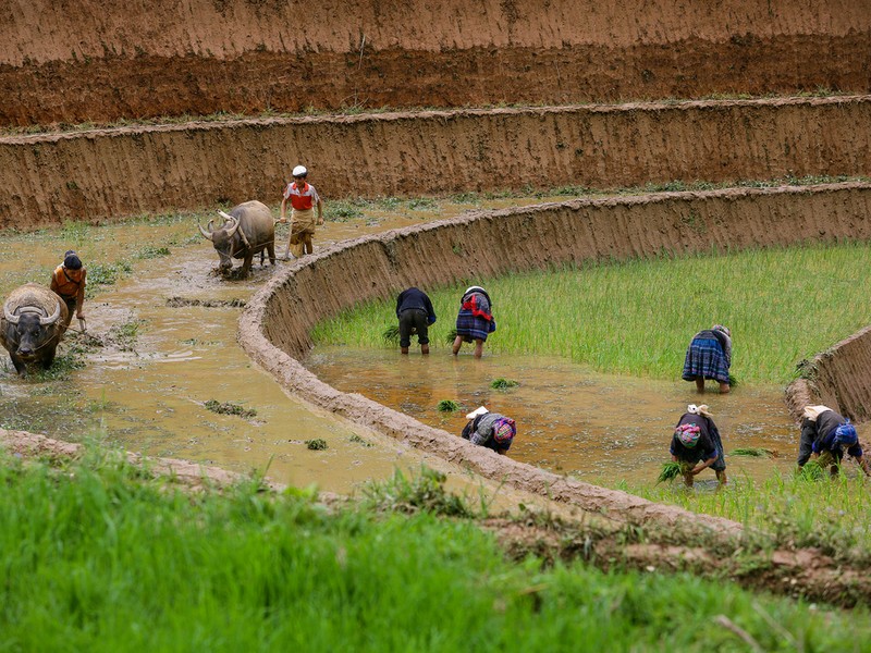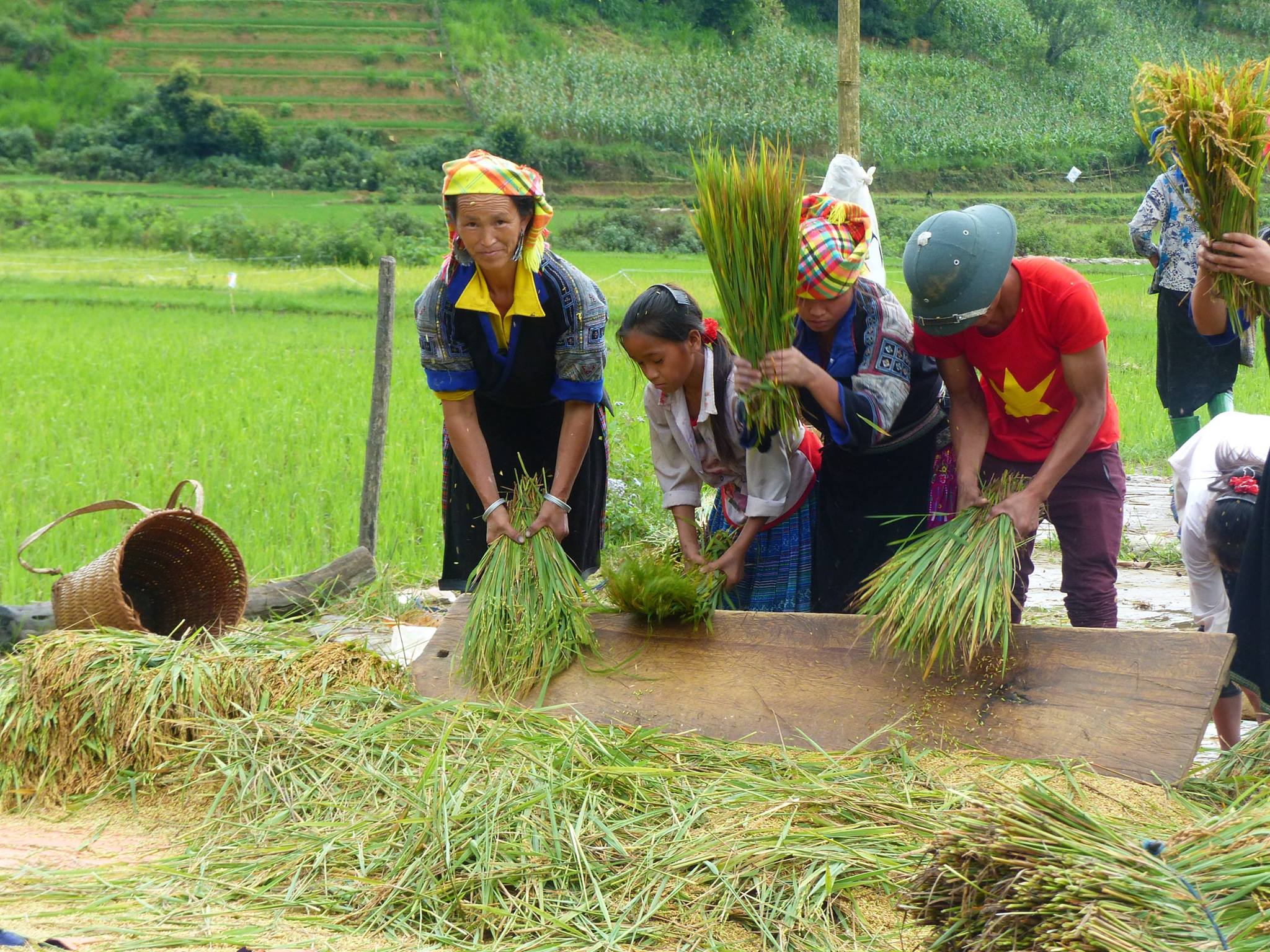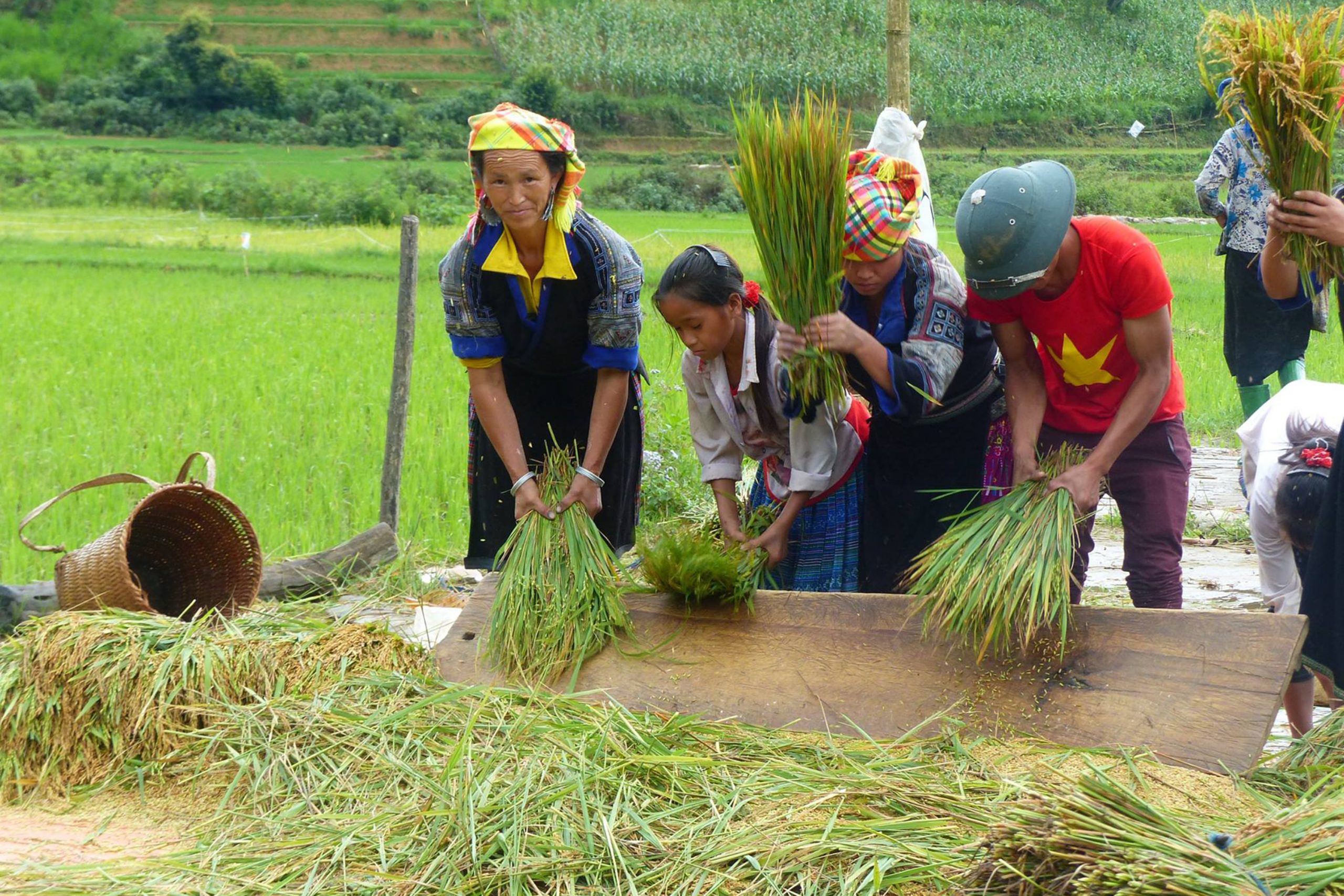 Images of activities the foreigner interact with locals joining with locals in harvesting time in April admiring the stunning view laughing with children The tour of exploring around Mu Cang Chai